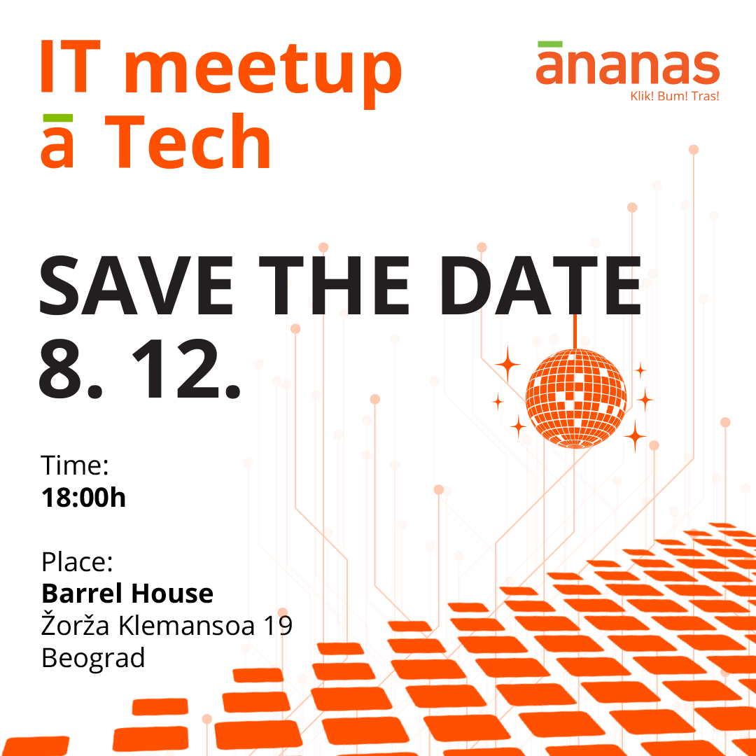 Ananas E-Commerce - Ananas IT meetup pod sloganom Ananas A Tech održaće se 8.12. u 18 časova u Barrel House.